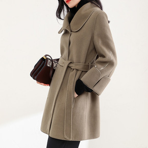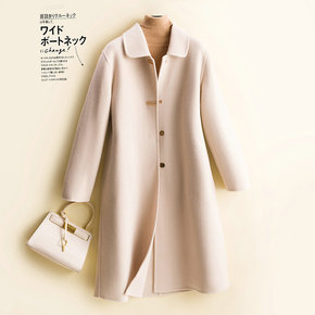 秋冬新款双面羊绒大衣女中长款修身显瘦小个子毛呢外套...
