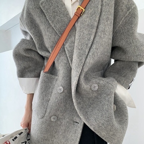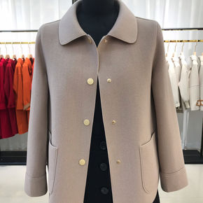 邑米双面羊毛大衣女短款 秋冬新款小个子方领纯色上衣...