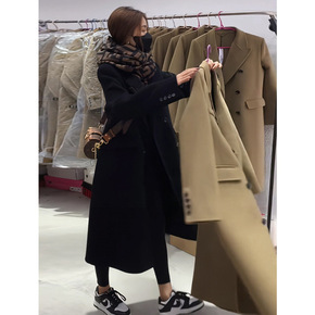 黑色赫本风双面羊绒大衣女冬季中长款年小个子西装毛呢...