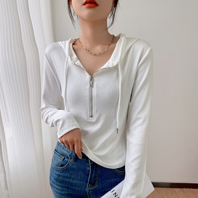 连帽卫衣女春秋薄款2021年新款设计感小众长袖小个...