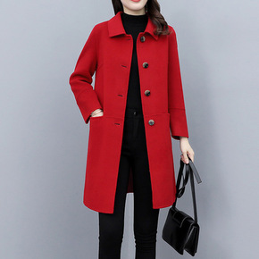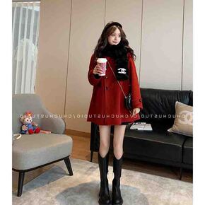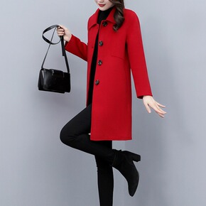 本命年红色女装时尚冬季过年喜庆外套大码胖mm毛呢中...