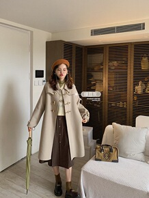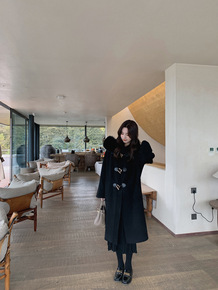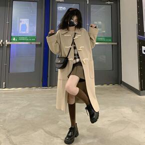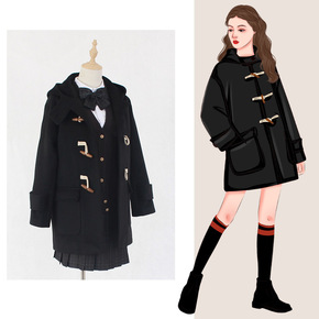 牛角扣毛呢外套女学院风日系学生装冬外套小个子毛呢大...