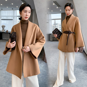 2021秋冬季新款双面羊毛大衣女小个子高端修身羊绒...