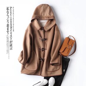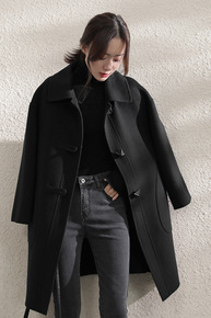 2022年秋冬季新款牛角扣双面羊绒大衣女小个子短款...