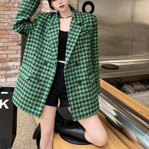咖色西装外套女2021秋冬新款流行小个子格子粗花呢...