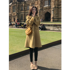 2021秋冬季新款娃娃领毛呢大衣女中长款韩版宽松气...