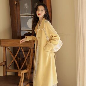 皇峥日系毛呢风衣外套女加厚2021秋冬新款宽松设计...