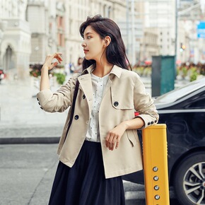 风衣外套女短款2021年秋装新款时尚韩版小个子气质...