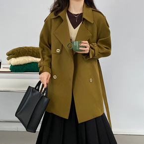 2021秋冬季新款女装一件代发小个子复古英伦风衣女...