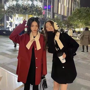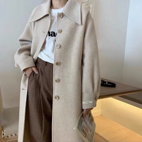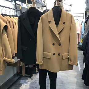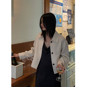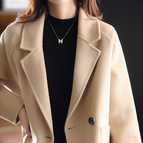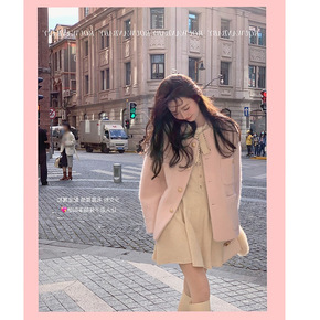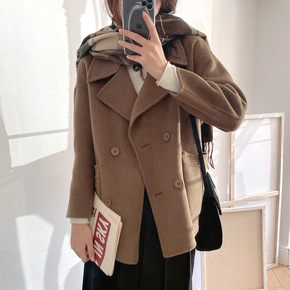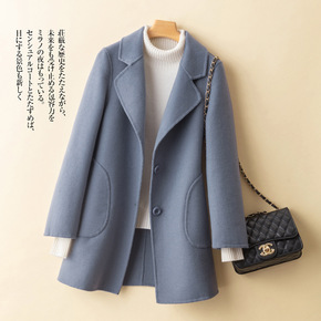 莉之绮双面羊毛大衣秋冬新款小个子时尚气质西装领呢子...