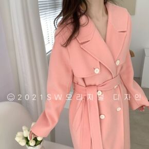 韩版小金扣粉色毛呢外套女冬加厚保暖2021年新款女...