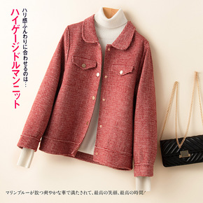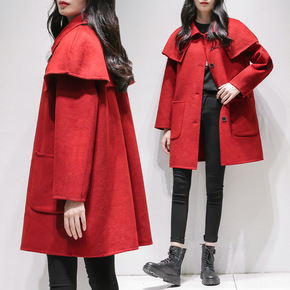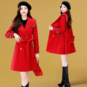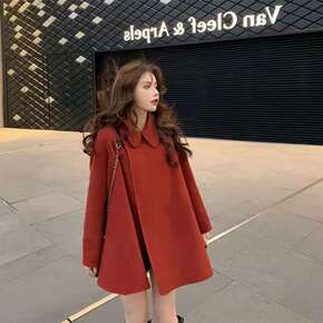妮子大衣2021年新款小个子秋冬毛呢女装中长款红色...