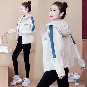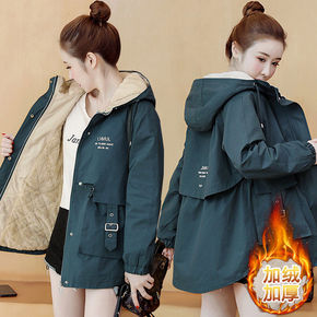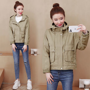 卡其色时尚外套女短款早春韩版小个子薄款休宽松连帽工...