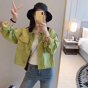 春季工装外套女韩版宽松短款上衣女小个子气质百搭休闲...
