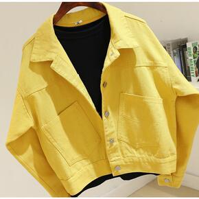 2022春秋新款糖果百搭小个子黄色牛仔外套女短款紫...