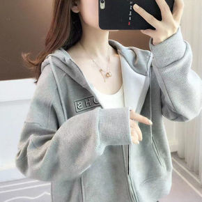 小个子开衫连帽卫衣女加绒加厚秋冬季韩版宽松百搭拉链...