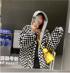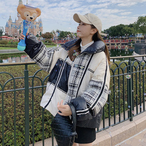 冬韩国立领菱格棒球服工装棉衣宽松加厚保暖羽绒棉短款...