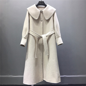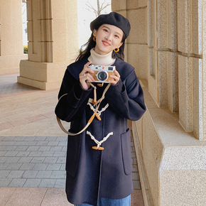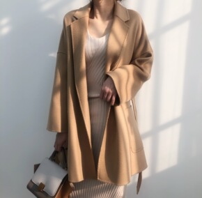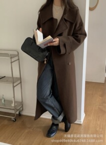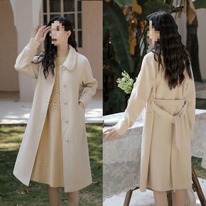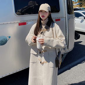 22年新款韩国东大门双面手缝羊毛大衣小个子中长款西...