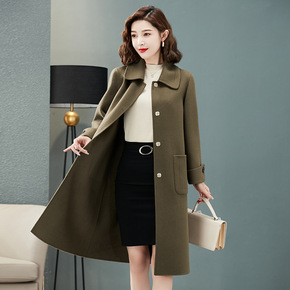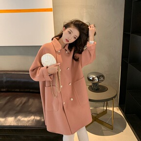 小个子韩版宽松中长款2022秋冬羊绒双面呢大衣女秋...