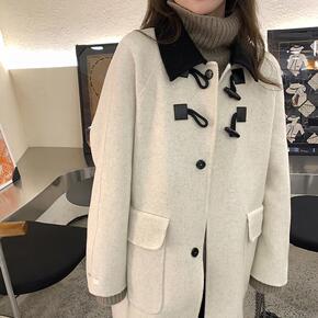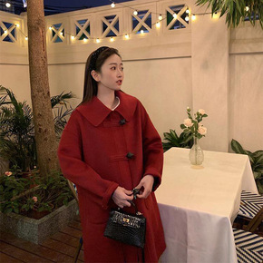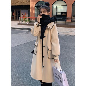 娃娃领毛呢外套女2021年新款秋冬加厚韩版宽松小个...