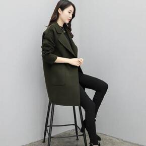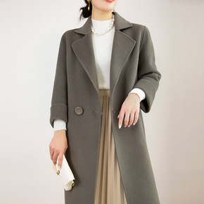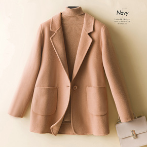 2022秋冬跨境女式双面呢大衣韩版西装领小个子羊毛...