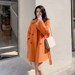 桔色双面羊绒大衣女中长款双排扣2022年新款冬小个...