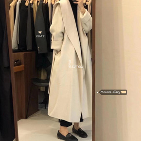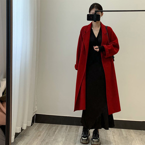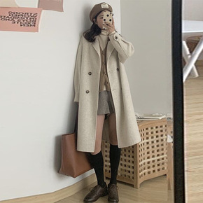 双面羊毛大衣女2021年新款中长款过膝双排扣西装领...