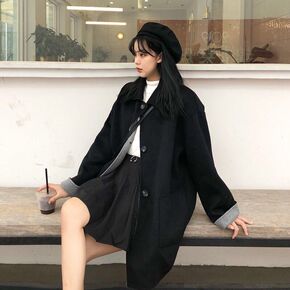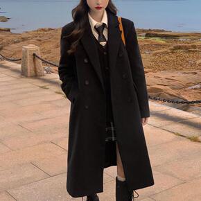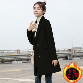 包邮毛呢外套女中长款秋冬季加厚女潮百搭小个子西装双...
