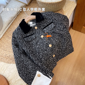 秋冬款牛角扣毛呢外套女2021年新款秋冬季小个子呢...