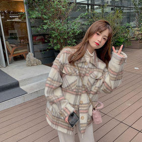 格子毛呢外套女秋冬季2020新款韩版学生宽松百搭小...