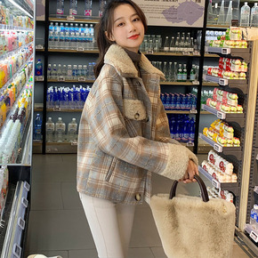 加绒加厚羊羔绒短外套女冬季新款上衣皮毛一体小个子羊...