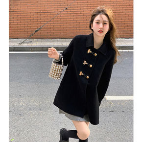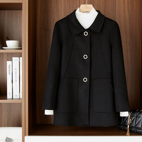 肉完黑色斗篷双面呢大衣女2021年新款小个子韩系牛...