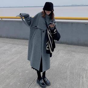 长款毛呢外套女装秋冬季2021新小个子设计感小众气...