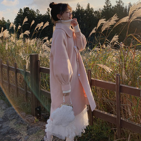 粉色毛呢外套女秋冬2021年新款温柔风小个子中长款...
