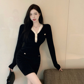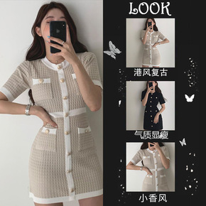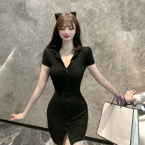 气质洋气小个子时尚小女人翻领polo紧身包臀显瘦短...