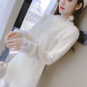2021春夏新款小个子白色蕾丝裙子韩版V领收腰显瘦...