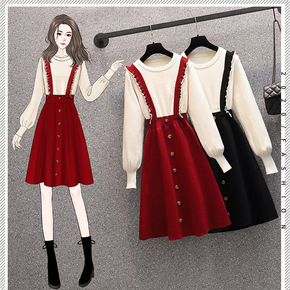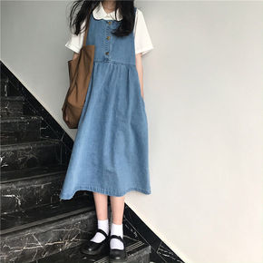 日系a字牛仔背带连衣裙秋季学生衬衫小个子早秋港风套...