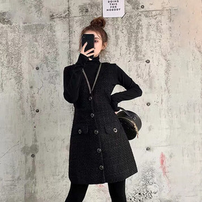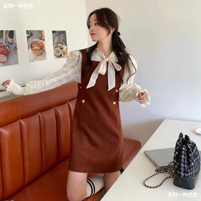 网红同款2021新款春秋小个子学院风长袖西装裙百褶...