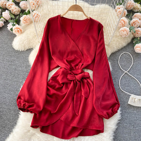 法式小个子连衣裙女春季新款设计感小众桔梗女神范V领...