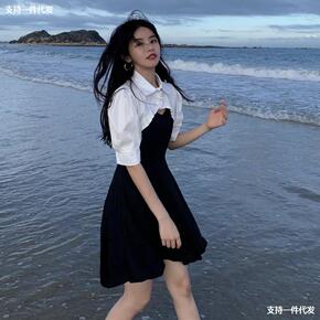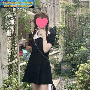 连衣裙法式娃娃领黑色小个子连衣裙女夏季设计感小众2...