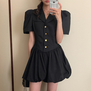 韩国Chic夏季新款气质修身显瘦泡泡袖小个子西装领...