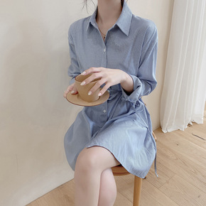 主图来源:实拍有模特 货源类别:现货 图案:条纹 工艺:印花/印染 款式:衬衫裙 组合形式:...