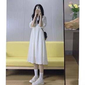 娃娃领连衣裙秋长款到脚踝仙女白色长袖文艺森系日系裙...
