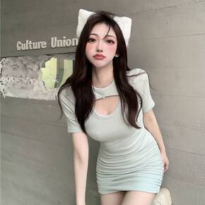 连衣裙紧身短袖包臀连衣裙辣妹春夏高腰小个子显瘦20...