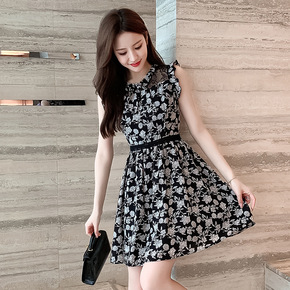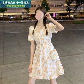 主图来源:实拍有模特 货源类别:现货 图案:碎花 工艺:蝴蝶结,荷叶边,勾花镂空,拼接,拉链...