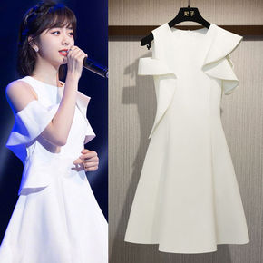 白色连衣裙女2021年夏季新款小个子名媛气质修身收...