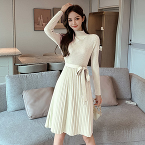 法式针织连衣裙子女秋冬装2021年新款冬季小个子优...