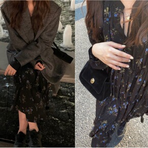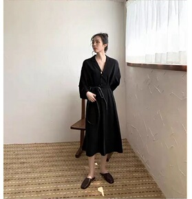 返单黑色长袖连衣裙女2021秋季新款韩国东大门小个...