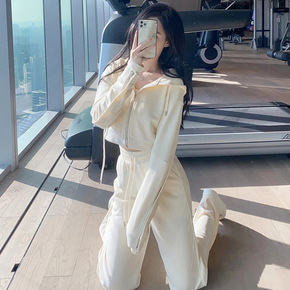 阔腿裤女春秋2021新宽松束脚高腰休闲百搭小个子运...