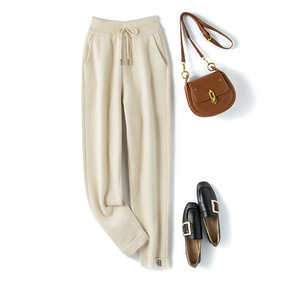 毛织休闲裤女2021秋冬季新款高腰显瘦加厚萝卜裤九...